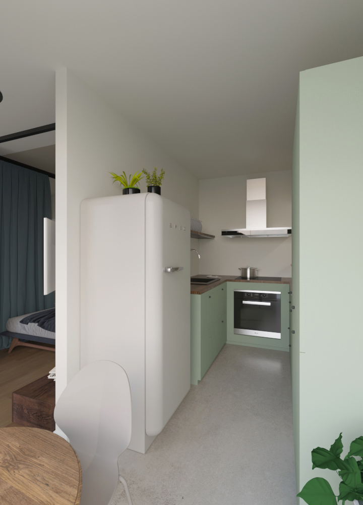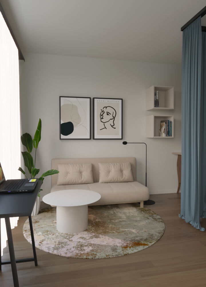 Progetto di ri-arredo per un monolocale di 36mq in città.